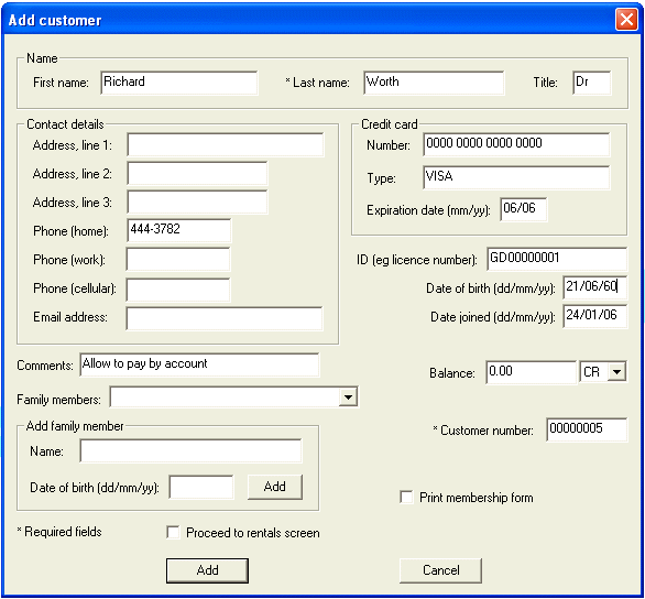 To add a customer to the database, click on the customer icon on the toolbar or press F4.